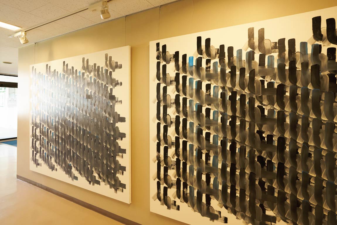 書道部も一人ひとりが自分らしい作品づくりに取り組んでいる。文化祭では、書を使って空間を表現する一つの作品を全部員で作り上げていく。外部のコンクールにも参加しており、2024年度の高等学校書道展では個人・団体ともに県大会で優勝。5年連続で全国高総文祭に出場している。