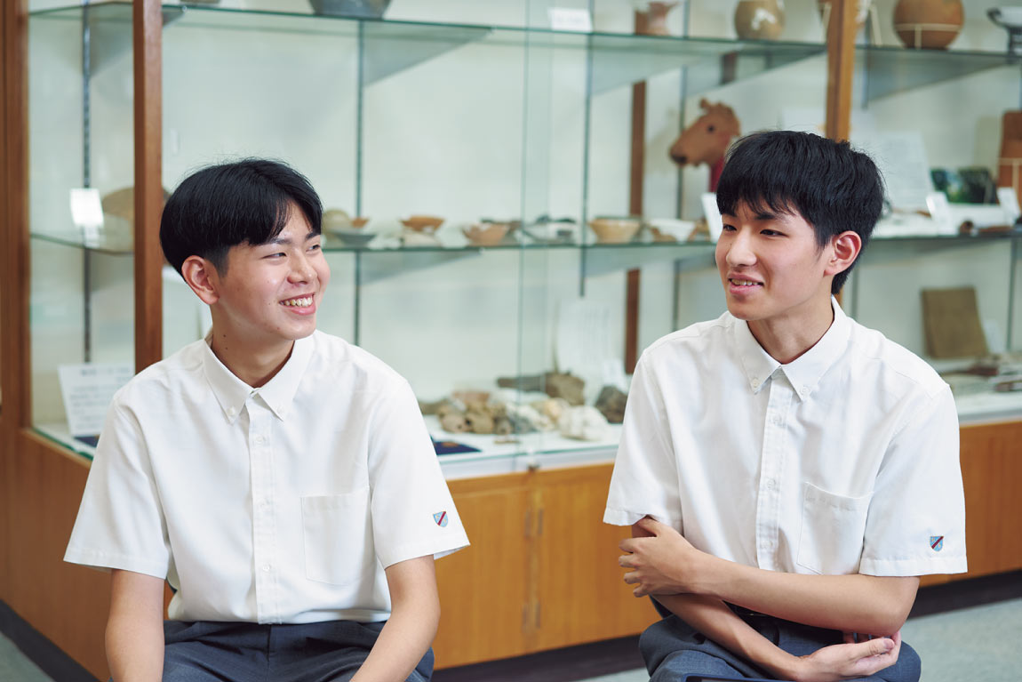 なかでも、高1対象の出雲研修は、国語科と地歴公民科が協力し合う、教科横断型の研修だ。校内にある学校博物館「日本文化史資料館」の所蔵品を題材にした映像教材を活用し、日本の文化財を守り、伝えていくことや、出雲の神話について事前に学習。それを踏まえて、現地で2泊3日のフィールドワークを行う。出雲研修の目的について、小川澄人先生がこう話す。