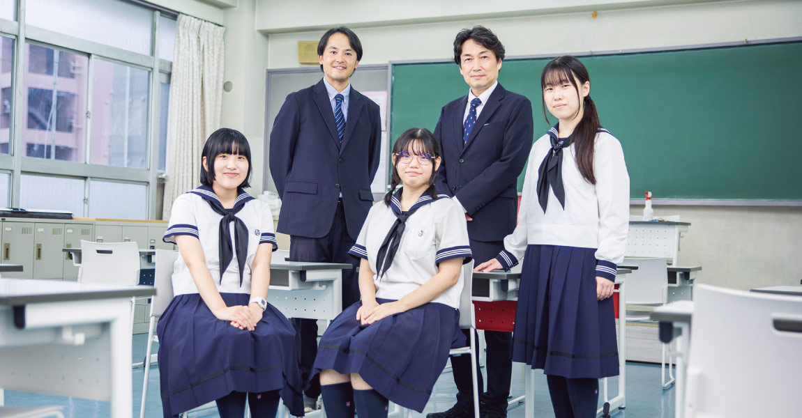 成⼥⾼等学校は、1899(明治32)年の建学以来、「社会で活躍できる⾃律・⾃⽴した⼥性の育成」を教育⽅針とし、早くから教育を通して⼥性の社会進出を⽀えてきた歴史を持つ。その伝統を継承しつつ、2020年には探究学習とキャリア教育を組み合わせた「⾃主研究ゼミ」や⾃⼰表現のための「表現プログラム」を⽴ち上げるなど、⼤幅な教育改⾰を実施。「360°キャリア探究」を掲げ、学校⽣活全体をキャリア教育につなげ、学⼒・探究・⾮認知能⼒を全⽅位的に伸ばす取り組みは、2024年にキャリア教育優良校として⽂部科学⼤⾂表彰を受賞するなど、⼤きな成果を上げている。同校では学校の⽅針が⽣徒に深く根付いていることも⼤きな特徴で学校説明会を「⾃分たちの後輩は⾃分たちの⼿で」という考えで⽣徒たちが運営し、教育内容の説明なども⾏っている。キャリア教育の特⾊について、⾼校3年⽣3名、校⻑の⼩泉潤先⽣と広報部⻑の鈴⽊暁⼠先⽣に話を聞いた。⽣徒にはそれぞれが感じる成⼥の魅⼒について語ってもらった。