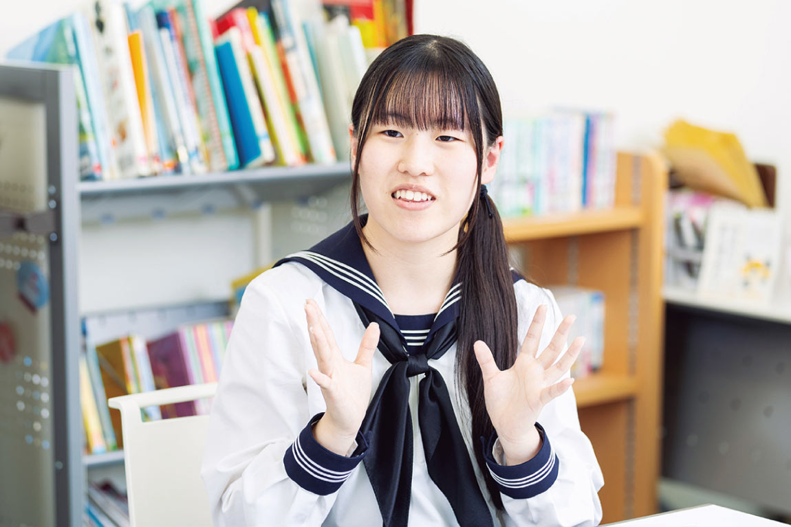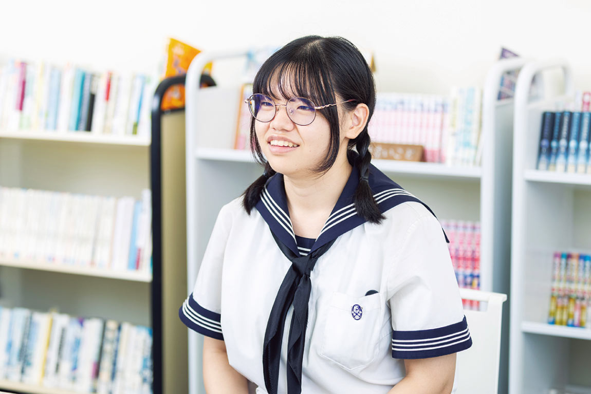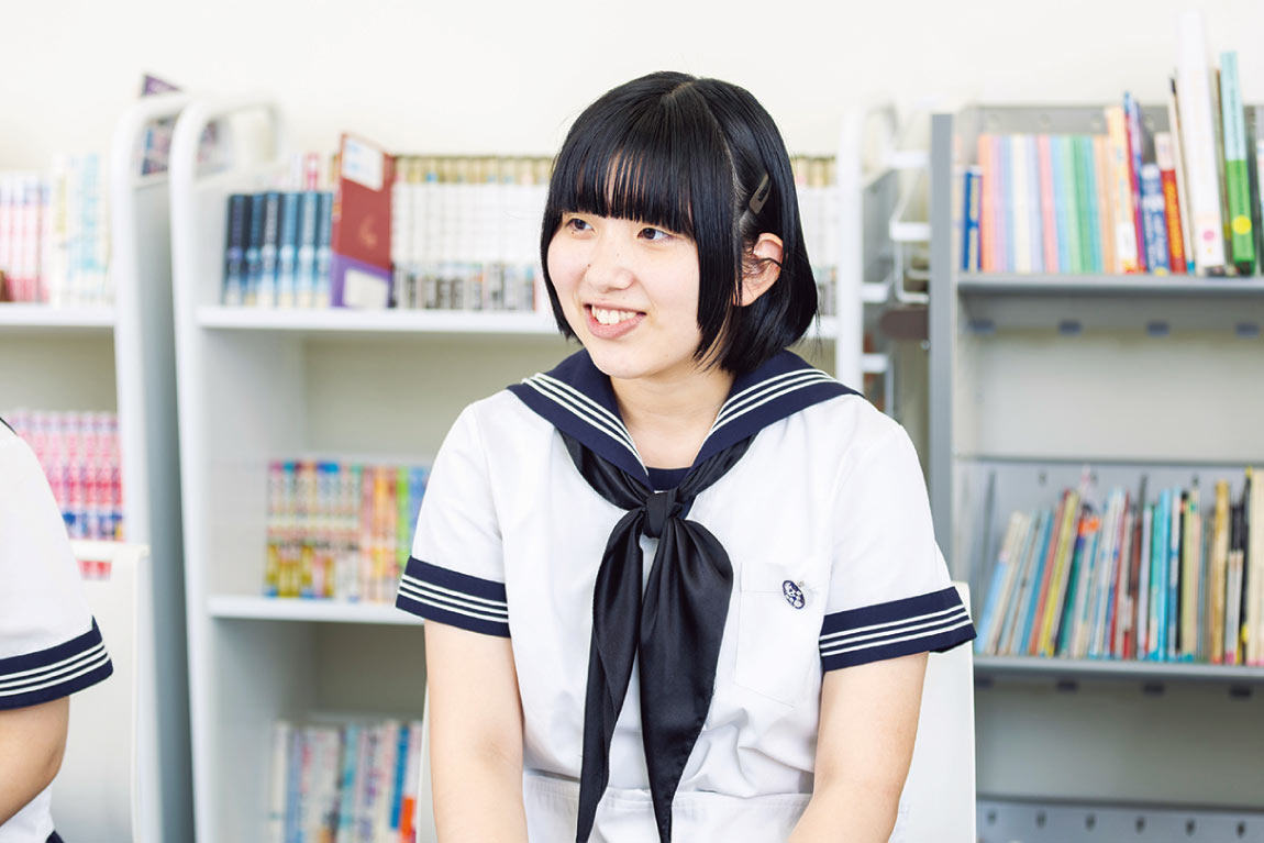 私は中学校では勉強が苦手だったのですが、高校入学後、毎日の10分程度の朝学習を続けていると少しずつ勉強が楽しくなってきました。少人数制なので授業で追いつけない生徒を置き去りにせず、復習などの対応をしてくれます。何より先生が小さなことでも褒めてくれるのが、私にとって大きなモチベーションになりました。学期末には成績優秀者や英検合格者などたくさんの生徒を表彰してくれるのもとても嬉しいです。私は人を助ける仕事に就きたいと思っており、コロナが流行した中1の頃にニュースでと病院で必死に命と向き合う看護師の方の姿を見て憧れを抱くようになりました。現在は看護学部のある大学に志望を決め、受験勉強に力を入れています。もし高校選びに迷っている中学生がいたら、ぜひオープンスクールに来てください。本校のよさは来ていただければきっとわかります。